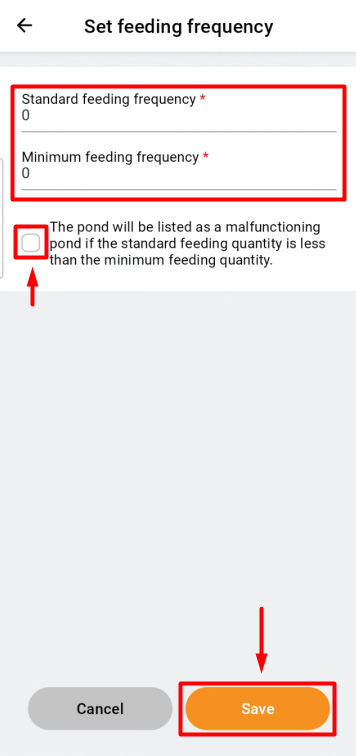 - The "Set feeding frequency" page will be displayed on the screen. Enter the required feeding parameters and click "Save".