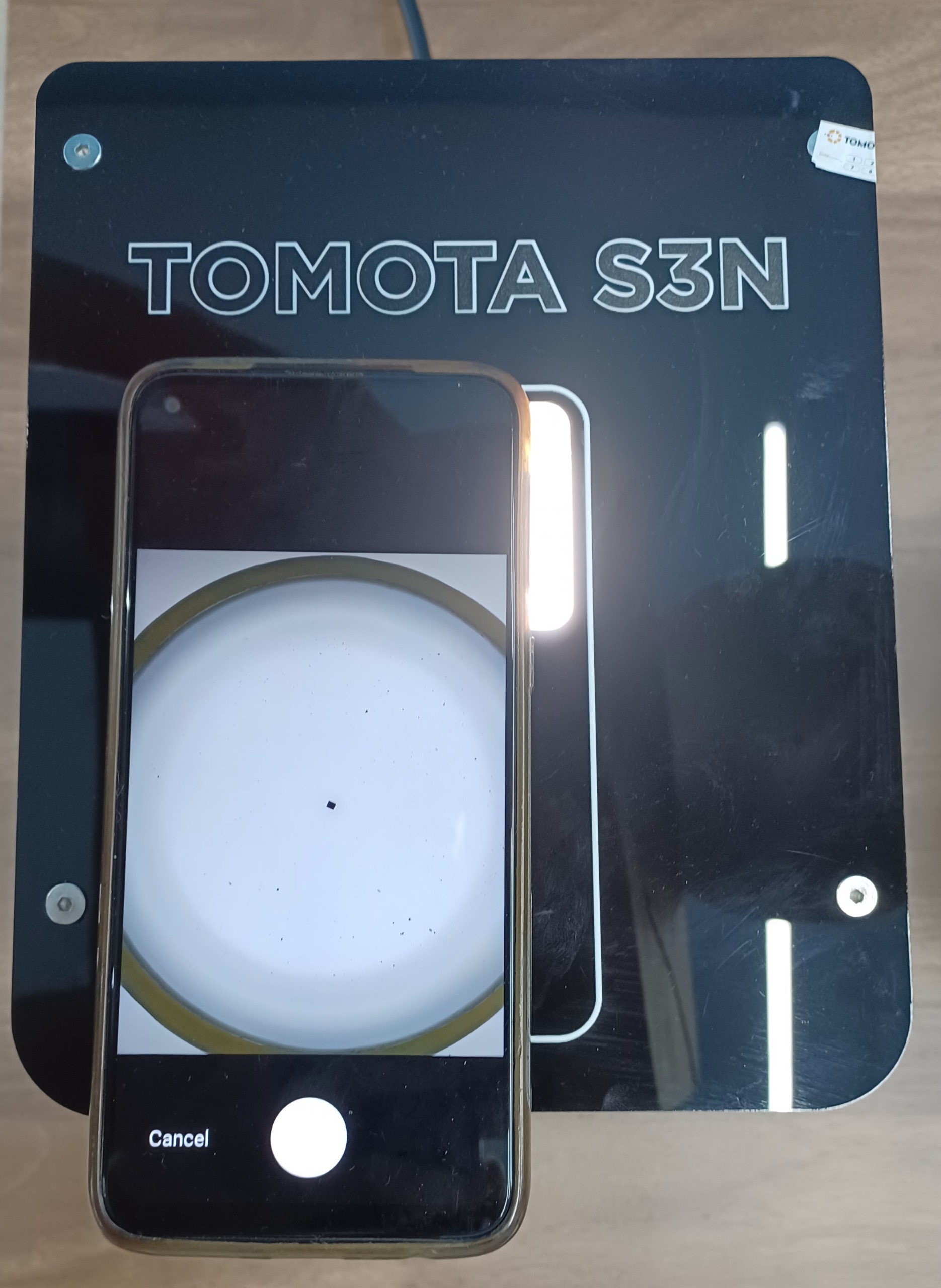 Note: Tap on the black point in the center of the tray on your phone to focus the camera.