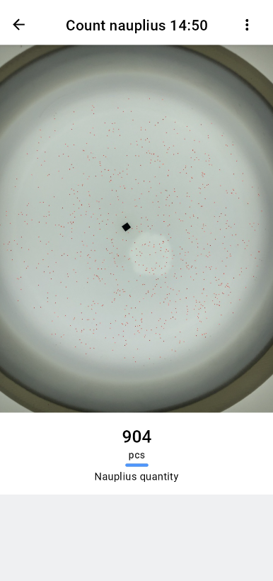 AI camera will automatically count Nauplii and display results during the measurement process.